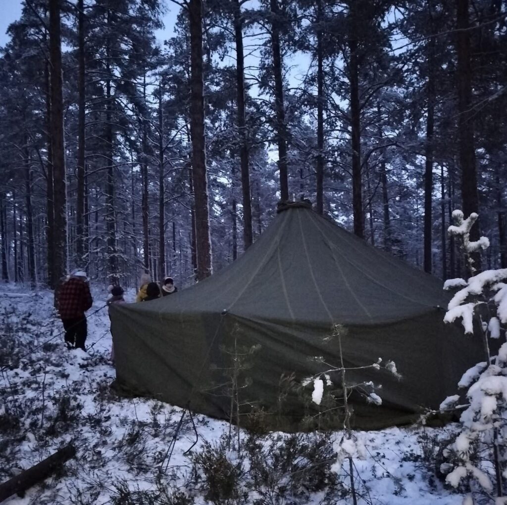 Ulkona riitti kaikenlaista mukavaa talvipuuhaa: saunasta karattiin suoraan lumihankeen, laskettiin mäkeä naurun säestyksellä, käytiin metsäretkellä ja seikkailtiin suunnistusradalla. Yksi leirin hauskimmista hetkistä syntyi ehkä spontaanisti – pulkan ryöstö nousi lasten suosikiksi ja sai nauramaan niin pienet kuin isommatkin leiriläiset. Lisäksi ehdittiin myös vuolla, rakentaa upea jäätaideteos, leikkiä perinteisiä partioleikkejä ja tietenkin kokoontua yhteen iltaohjelman äärelle.